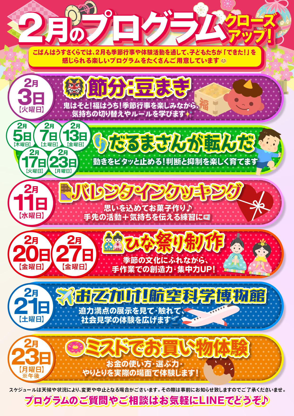 ぜひ一度、教室にお越しください。 「うちの子に合うかな?」「どんなことをするのかな?」「うまくやれるかな?」などの不安を解消するために、一度教室をご見学ください。 こぱんはうすさくらについては送迎も含めた無料体験をおすすめします。